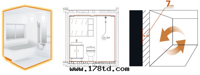 Insulation Interlayer Design Between the panel and the wall, there is a 7cm thick interlayer which keep the heat in the bathroom, even in the cold winter.