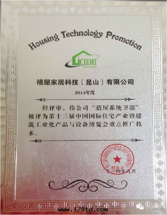 作(zuò)为住宅(zhái)産業化(huà)的(de)新(xīn)軍,禧屋(wū)在(zài)本(běn)屆住博会上(shàng)甫一(yī)亮(liàng)相就(jiù)吸引了(le)業內(nèi)的(de)极(jí)大(dà)關(guān)注,獲得了(le)專業的(de)肯定。因(yīn)为系(xì)統集成(chéng)解(jiě)決了(le)衛生(shēng)間(jiān)的(de)全(quán)套(tào)装修問(wèn)題(tí),禧屋(wū)系(xì)統衛浴被(bèi)评为“第(dì)十(shí)三(sān)屆中(zhōng)國(guó)國(guó)際住宅(zhái)産業暨建築工業化(huà)産品與(yǔ)設備博覽会重(zhòng)點(diǎn)推廣技術(shù)”。