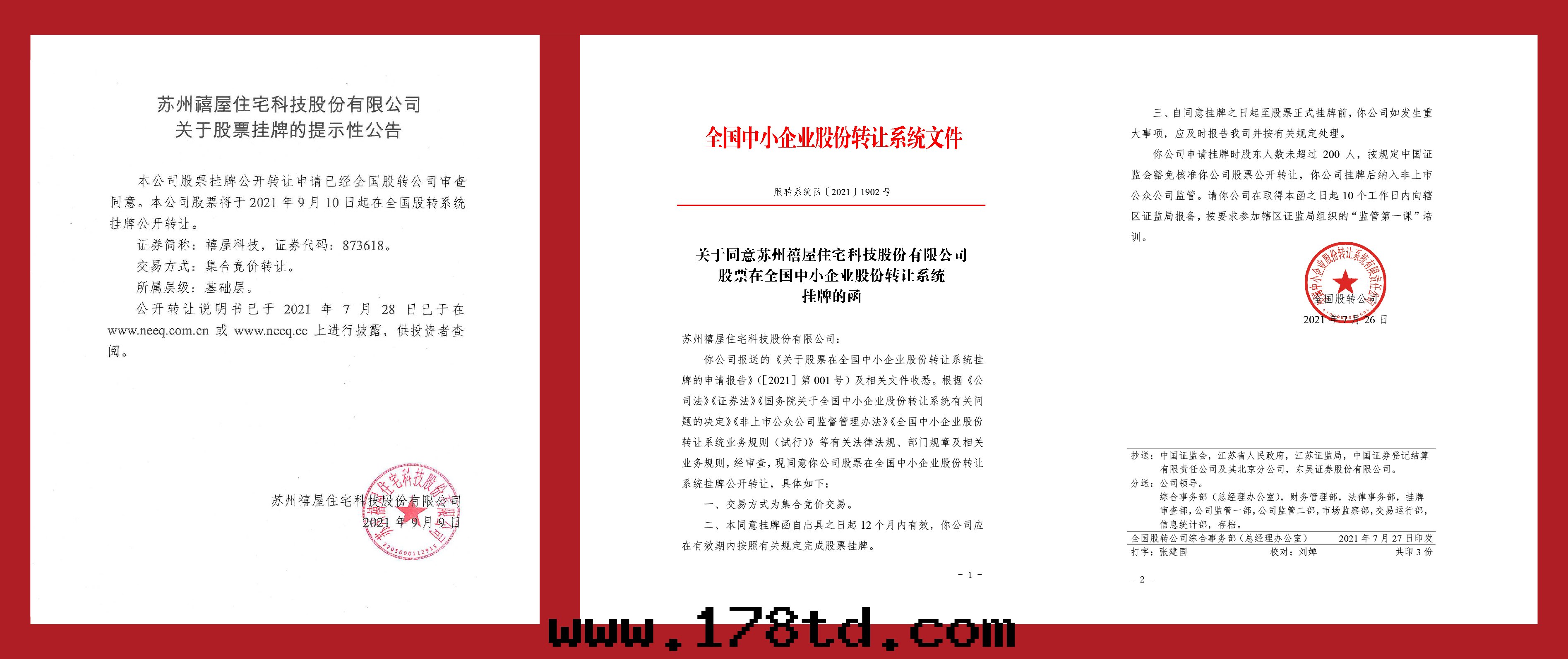 装配式整體(tǐ)衛浴行業的(de)新(xīn)勢力,禧屋(wū)科技(證券代(dài)碼:873618)成(chéng)功挂牌(pái)新(xīn)三(sān)闆!近(jìn)日(rì),習近(jìn)平總(zǒng)书記(jì)宣布深化(huà)新(xīn)三(sān)闆改革(gé),設立北(běi)京(jīng)證券交易所(suǒ)!禧屋(wū)科技作(zuò)为創新(xīn)型中(zhōng)小企業,北(běi)交所(suǒ)的(de)成(chéng)立将是(shì)禧屋(wū)走(zǒu)向(xiàng)資本(běn)市(shì)场(chǎng)的(de)重(zhòng)大(dà)利好(hǎo)!